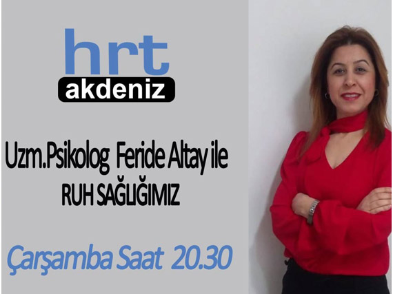 HRT Akdeniz TV’de Uzman Psikolog Feride ALTAY ile Ruh Sağlığımız programını hazırlamakta ve sunmaktayım.